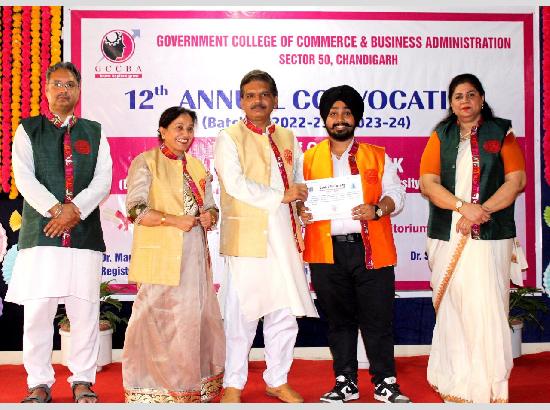 गवर्नमेंट कॉलेज ऑफ कॉमर्स एंड बिजनेस एडमिनिस्ट्रेशन , सेक्टर 50, चंडीगढ़ में शनिवार को 12वां दीक्षांत समारोह भव्यता के साथ आयोजित किया गया। इस अवसर पर शैक्षणिक वर्ष 2020-23 और 2021-24 के स्नातक एवं परास्नातक छात्रों को उपाधियां प्रदान की गईं।