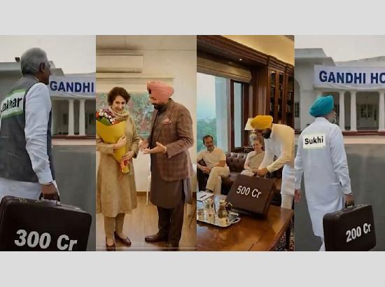 1. सुक्खी और 200 करोड़: सबसे पहले वीडियो में 'सुक्खी' को 200 करोड़ रुपये की अटैची लेकर गांधी हाउस में जाते दिखाया गया है। वह हाईकमान के सामने पैसे रखते हैं, लेकिन कम राशि होने के कारण उनकी अटैची लौटा दी जाती है.